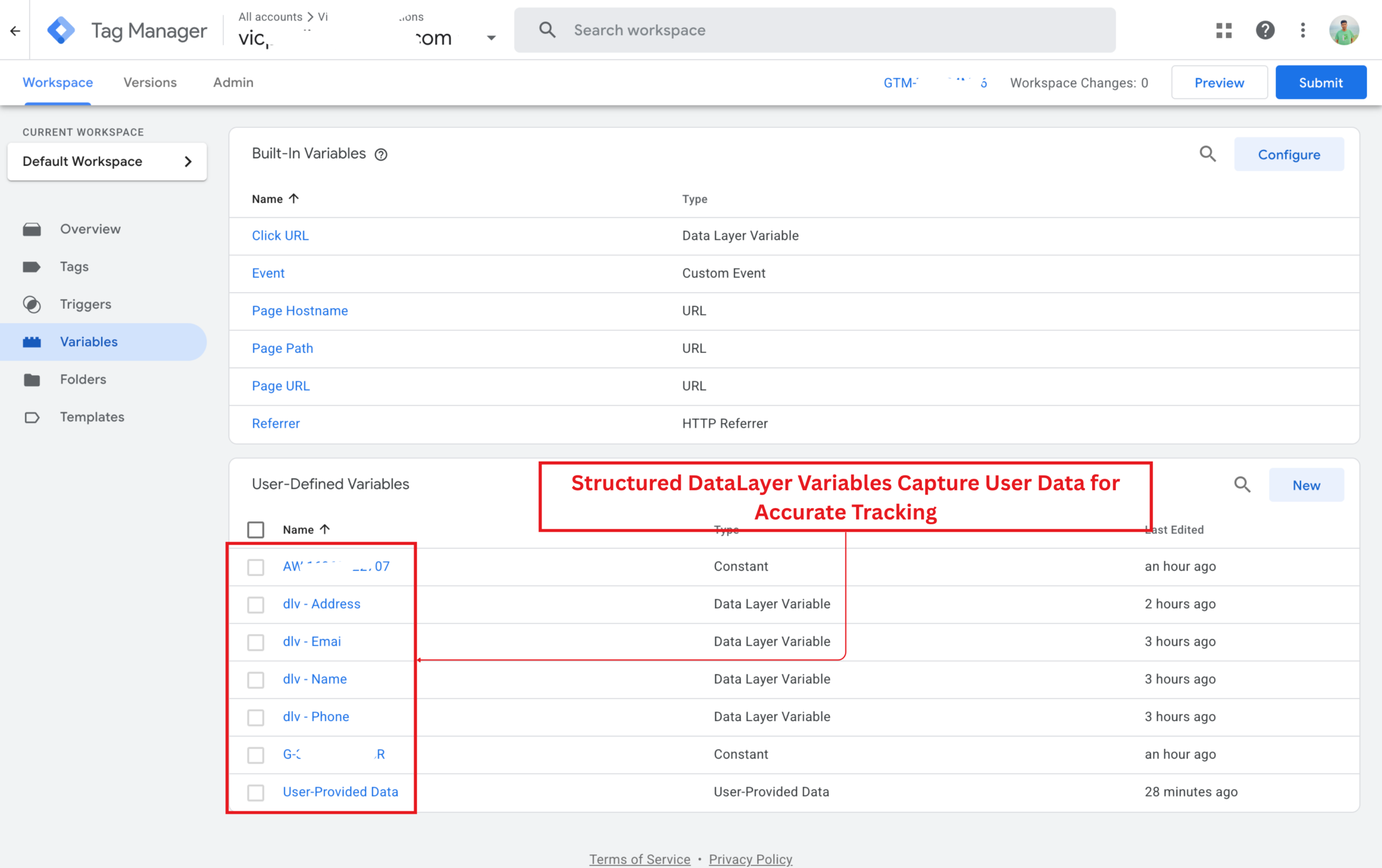 Structured DataLayer variables were implemented to capture user data such as name, email, and phone. This enables precise lead tracking and enhanced conversions in GA4 and Google Ads, improving attribution accuracy and campaign performance.