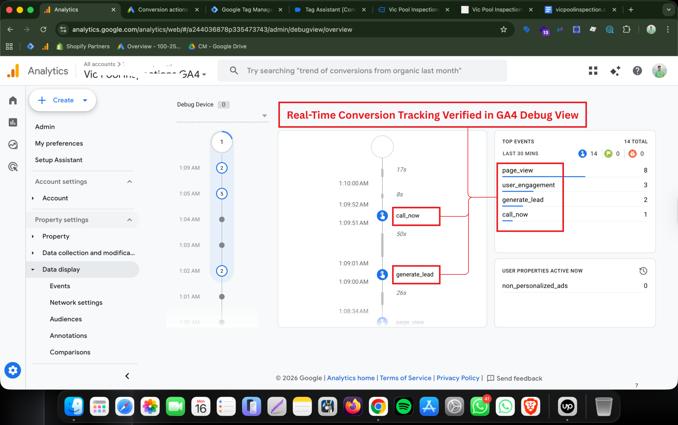 Verified that lead form submissions and call clicks are tracked in real-time within GA4. This ensures accurate reporting, better decision-making, and optimized marketing performance.